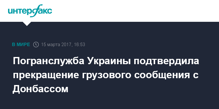 Москва. 15 марта. INTERFAX.RU - В Государственной пограничной службе Украины заявляют, что грузовые перевозки через линию разграничения в Донбассе прекращены с 13:00 среды 15 марта .