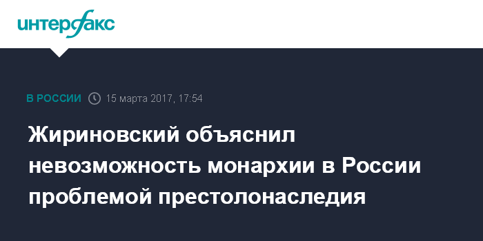Москва. 15 марта. INTERFAX.RU - Лидер ЛДПР Владимир Жириновский высказался против возвращения России к монархическому устройству, но предложил ввести в РФ должность Верховного правителя.