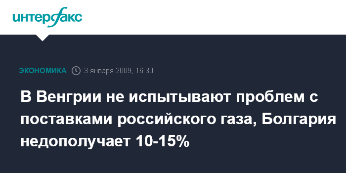 Москва. 3 января. INTERFAX.RU - Поставки российского газа в Венгрию проходят без каких-либо перебоев, сообщили в субботу в венгерской нефтегазовой компании МОЛ.