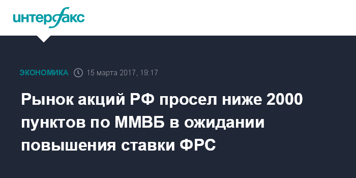Рынок акций РФ просел ниже 2000 пунктов по ММВБ в ожидании повышения ставки ФРС