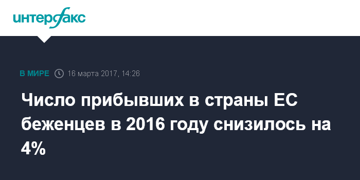 Число прибывших в страны ЕС беженцев в 2016 году снизилось на 4%