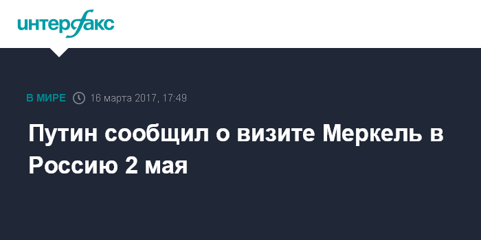 Москва. 16 марта. INTERFAX.RU - В России ждут с визитом канцлера ФРГ Ангелу Меркель 2 мая, заявил президент РФ Владимир Путин.
