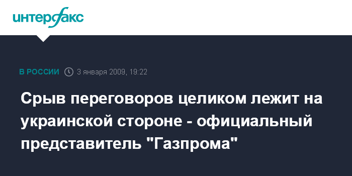 Срыв переговоров целиком лежит на украинской стороне - официальный представитель "Газпрома"
