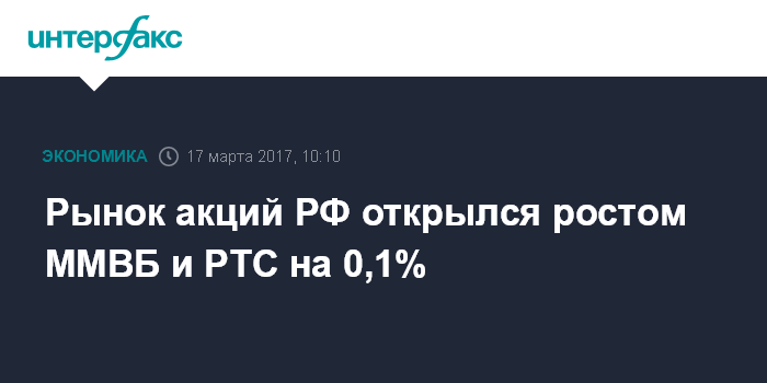 Рынок акций РФ открылся ростом ММВБ и РТС на 0,1%