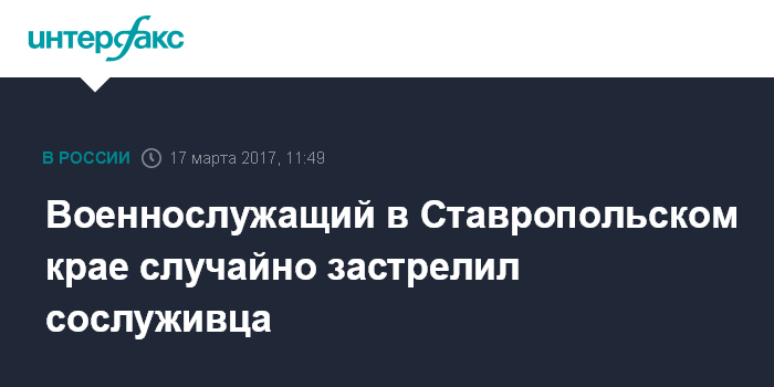 Москва. 17 марта. INTERFAX.RU - Военнослужащий-контрактник в Ставропольском крае в ходе учебных стрельб случайно выстрелил в сослуживца, сообщил "Интерфаксу" источник в военных структурах региона.