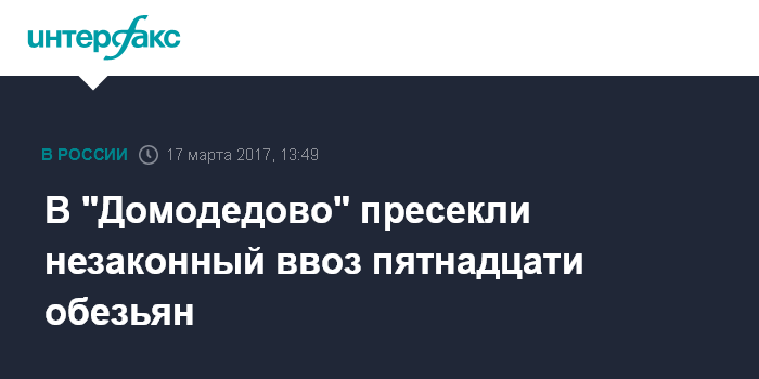 Москва. 17 марта. INTERFAX.RU - Сотрудники Федеральной таможенной службы московского аэропорта Домодедово пресекли незаконный ввоз из Вьетнама 15 детенышей обезьян, сообщили в пятницу в пресс-службе ведомства.