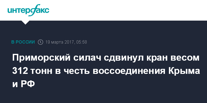 Приморский силач сдвинул кран весом 312 тонн в честь воссоединения Крыма и РФ