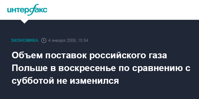 Объем поставок российского газа Польше в воскресенье по сравнению с субботой не изменился