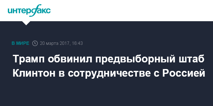 Москва. 20 марта. INTERFAX.RU - Президент США Дональд Трамп заявил, что необходимо изучить контакты представителей избирательного штаба бывшего кандидата в президенты США Хиллари Клинтон с Россией, но выразил сомнение, что демократы позволят ФБР это сделать.