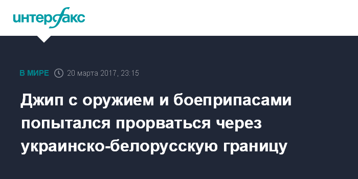 Москва. 20 марта. INTERFAX.RU - Следственный комитет Белоруссии возбудил уголовное дело в связи с попыткой прорыва через государственную границу со стороны Украины автомобиля с оружием и боеприпасами, сообщили в СК.