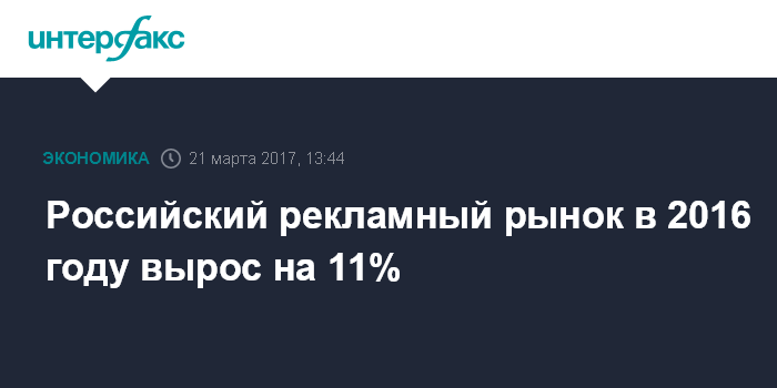 Российский рекламный рынок в 2016 году вырос на 11%