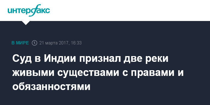Москва. 21 марта. INTERFAX.RU - Высокий суд индийского штата Уттаракханд признал реки Ганг и Ямуна "живыми существами со статусом юридического лица", обладающими соответствующими правами и обязанностями, сообщили во вторник западные СМИ.