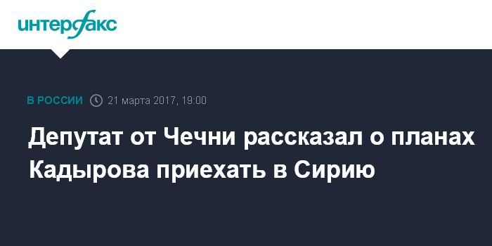 Москва. 21 марта. INTERFAX.RU - Глава Чечни Рамзан Кадыров собирается побывать в Сирии, сообщил "Интерфаксу" депутат Госдумы от Чеченской республики Адам Делимханов.