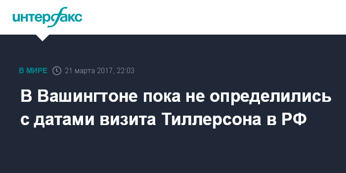 При этом замглавы МИД РФ Сергей Рябков заявил "Интерфаксу" во вторник, что не располагает информацией о дате визита Тиллерсона в Россию.