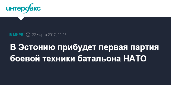 Москва. 22 марта. INTERFAX.RU - В Эстонию в среду прибудет первая партия тяжелой боевой техники для британского контингента международного батальона НАТО.