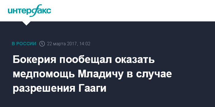 Бокерия пообещал оказать медпомощь Младичу в случае разрешения Гааги