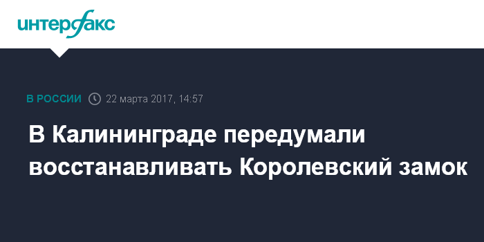 Москва. 22 марта. INTERFAX.RU - В Калининграде не будут восстанавливать разрушенный Королевский замок, сообщил журналистам в среду врио губернатора региона Антон Алиханов.