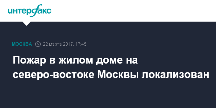 Москва. 22 марта. INTERFAX.RU - Пожар в многоэтажке на северо-востоке Москвы локализован, 13 человек пострадали, сообщил "Интерфаксу" источник в экстренных службах города.