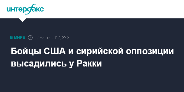 Москва. 22 марта. INTERFAX.RU - Военнослужащие США и союзные им бойцы из оппозиционного курдско-арабского альянса "Сирийские демократические силы" (SDF) осуществили десантную операцию неподалеку от города Ракка - оплота группировки "Исламское государство" (запрещена в РФ), сообщило арабское издание "Аль-Масдар".