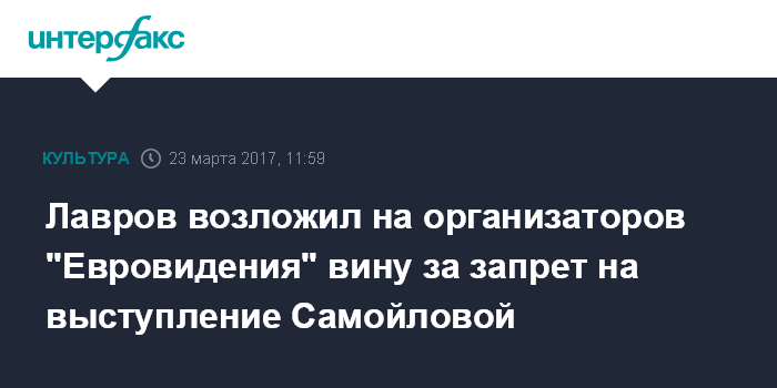Лавров возложил на организаторов "Евровидения" вину за запрет на выступление Самойловой