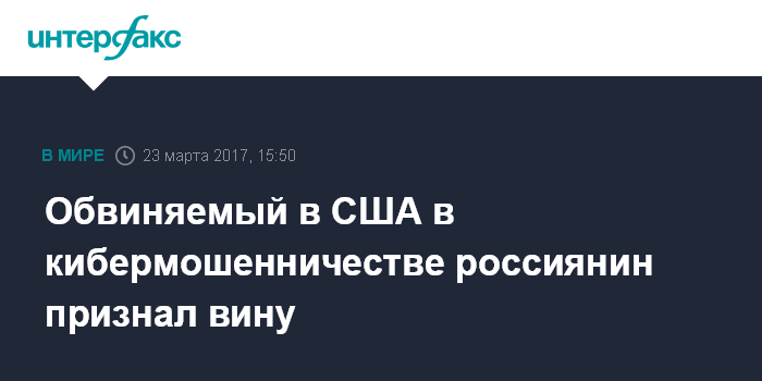 Москва. 23 марта. INTERFAX.RU - Россиянин Марк Вартанян, которого в США обвиняют в компьютерном мошенничестве, признал вину, сообщает "Би-би-си".