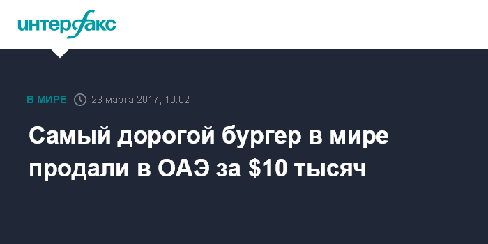 Москва. 23 марта. INTERFAX.RU - Самый дорогой бургер в мире был приобретен на благотворительном аукционе в Дубае за $10 тысяч, эти средства переданы фонду по борьбе с раком груди Pink Caravan, сообщает издание Gulf News.