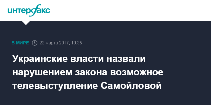Украинские власти назвали нарушением закона возможное телевыступление Самойловой