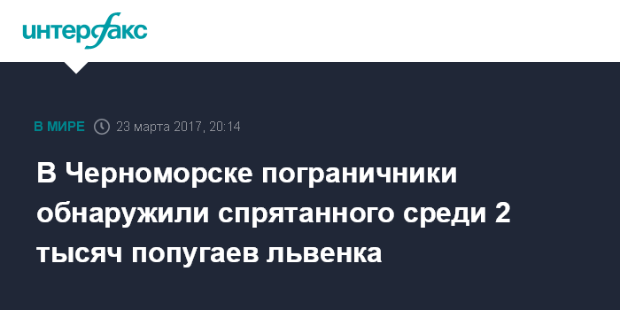 Москва. 23 марта. INTERFAX.RU - Пограничники Одесского отряда совместно с сотрудниками таможни обнаружили в международном пункте пропуска "Черноморский морской торговый порт" (Одесская обл.) львенка, которого пытались незаконно вывезти за границу.