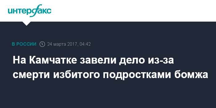 На Камчатке завели дело из-за смерти избитого подростками бомжа