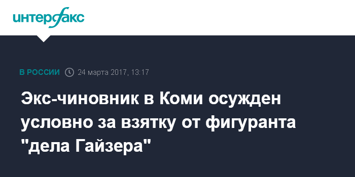 Экс-чиновник в Коми осужден условно за взятку от фигуранта "дела Гайзера"