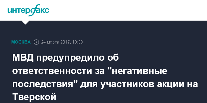 Москва. 24 марта. INTERFAX.RU - Правоохранительные органы не несут ответственность за возможные негативные последствия в отношении участников возможной несанкционированной акции 26 марта, заявил первый замминистра внутренних дел Александр Горовой.