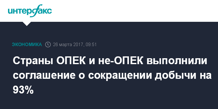 Страны ОПЕК и не-ОПЕК договорились сокращать добычу нефти в течение первого полугодия 2017 года для стабилизации нефтяного рынка. Страны ОПЕК должны сократить ее на 1,2 млн баррелей в сутки, страны не-ОПЕК на 558 тыс. баррелей в сутки, из которых 300 тыс. баррелей в сутки приходится на Россию.