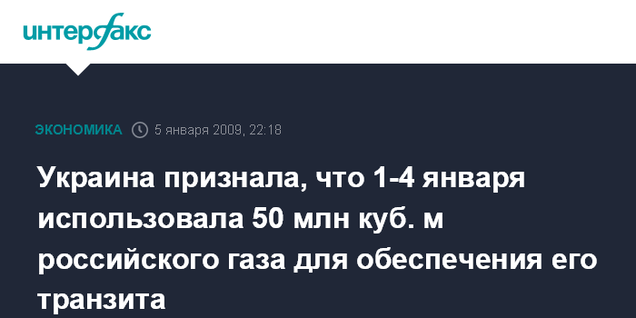 Украина признала, что 1-4 января использовала 50 млн куб. м российского газа для обеспечения его транзита