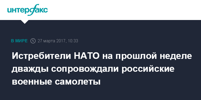 Москва. 27 марта. INTERFAX.RU - Истребители воздушной полиции НАТО, размещенные в странах Балтии, на минувшей неделе дважды поднимались в воздух, чтобы распознать и сопроводить летевшие в международном воздушном пространстве российские военные самолеты, сообщило в понедельник Минобороны Литвы.