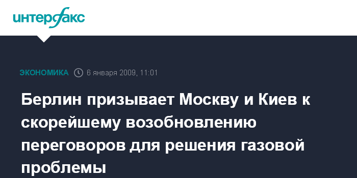 Берлин призывает Москву и Киев к скорейшему возобновлению переговоров для решения газовой проблемы
