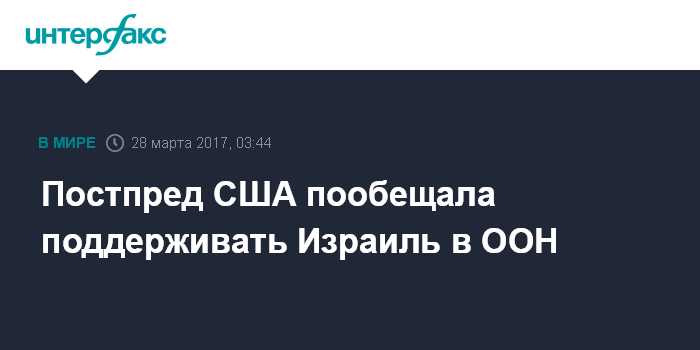 Постпред США пообещала поддерживать Израиль в ООН