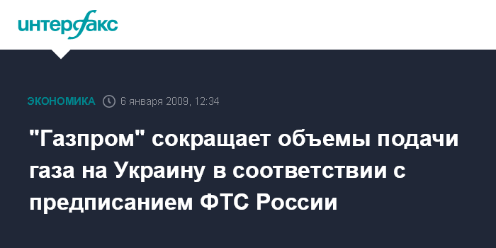 Москва. 6 января. INTERFAX.RU - ОАО "Газпром" приняло решение о сокращении объемов подачи газа в газотранспортную систему (ГТС) Украины в соответствии с предписанием ФТС России, сообщают в компании.
