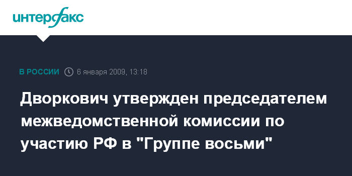Дворкович утвержден председателем межведомственной комиссии по участию РФ в "Группе восьми"