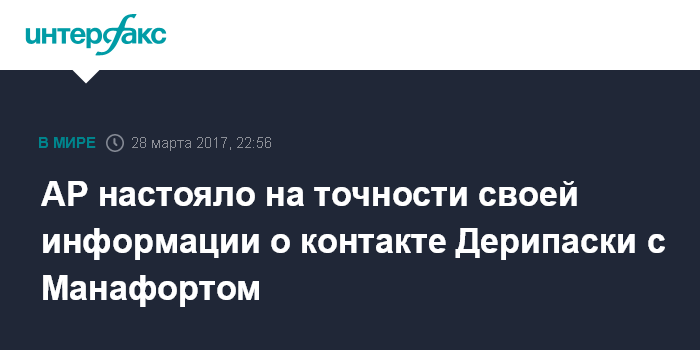 AP настояло на точности своей информации о контакте Дерипаски с Манафортом