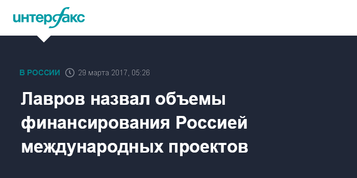 "Наша страна существенно нарастила финансирование международных проектов развития для государств как на пространстве СНГ, так и за его пределами. Объем российского содействия международному развитию достиг уровня в $1,16 млрд в год", - сказал Лавров, отвечая на вопросы читателей газеты "Аргументы и факты".