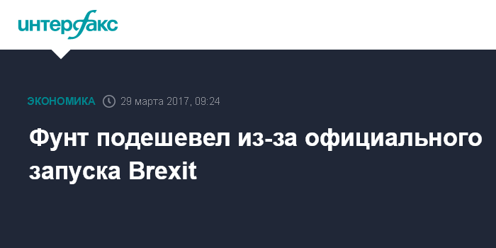 Москва. 29 марта. INTERFAX.RU - Фунт стерлингов снова дешевеет по отношению к доллару и иене из-за официального старта процедуры выхода Великобритании из Евросоюза (Brexit).