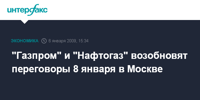 Москва. 6 января. INTERFAX.RU - Национальная акционерная компания (НАК) "Нафтогаз Украины" и ОАО "Газпром" продолжат переговоры об условиях поставок и транзита природного газа в 2009 году в Москве 8 января, заявил глава правления НАК Олег Дубина.