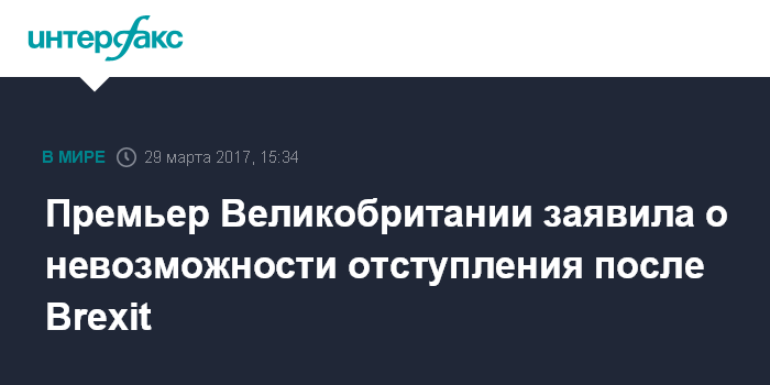 Москва. 29 марта. INTERFAX.RU -Премьер-министр Великобритании Тереза Мэй заявила, что возврат от процедуры Brexit невозможен.