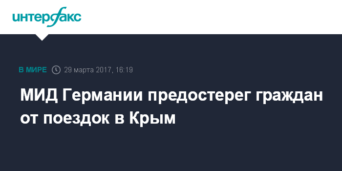 Москва. 29 марта. INTERFAX.RU - МИД Германии предупредил граждан страны, что им не стоит совершать поездки в Крым.