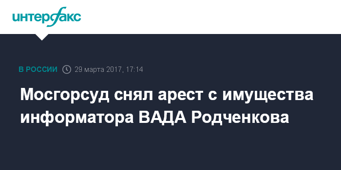 Мосгорсуд снял арест с имущества информатора ВАДА Родченкова