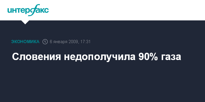 Москва. 6 января. INTERFAX.RU - Словенская газовая компания "Геоплин" во во второй половине дня вторника распространила коммюнике, в котором говорится, что страна недополучает 90% поставок газа.