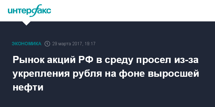 Рынок акций РФ в среду просел из-за укрепления рубля на фоне выросшей нефти