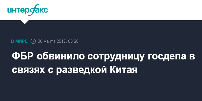 ФБР обвинило сотрудницу госдепа в связях с разведкой Китая