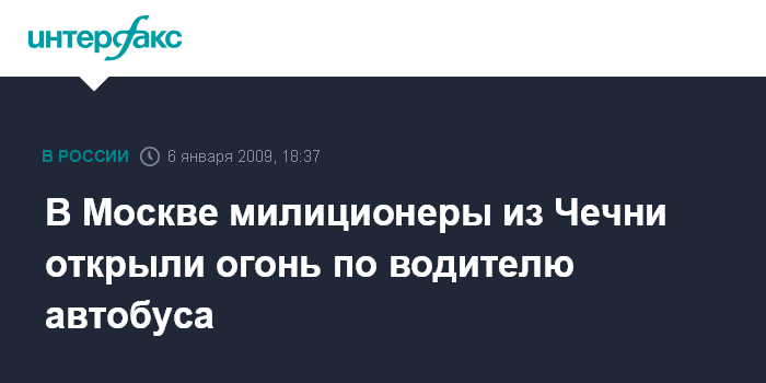 Москва. 6 января. INTERFAX.RU - В понедельник вечером на западе столицы двое чеченских милиционеров открыли стрельбу по водителю автобуса, гражданину Украины.