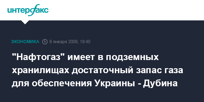 Киев. 6 января. ИНТЕРФАКС-УКРАИНА - Запасы природного газа в подземных хранилищах (ПХГ) НАК "Нафтогаз Украины" на 6 января составляют 16-16,5 млрд куб. м, сообщил глава правления госхолдинга Олег Дубина.